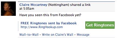 It seems that now even facebook apps are auto-spamming friends’ walls. Just a bit further down the slippery slope…